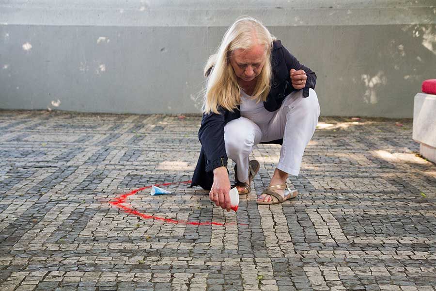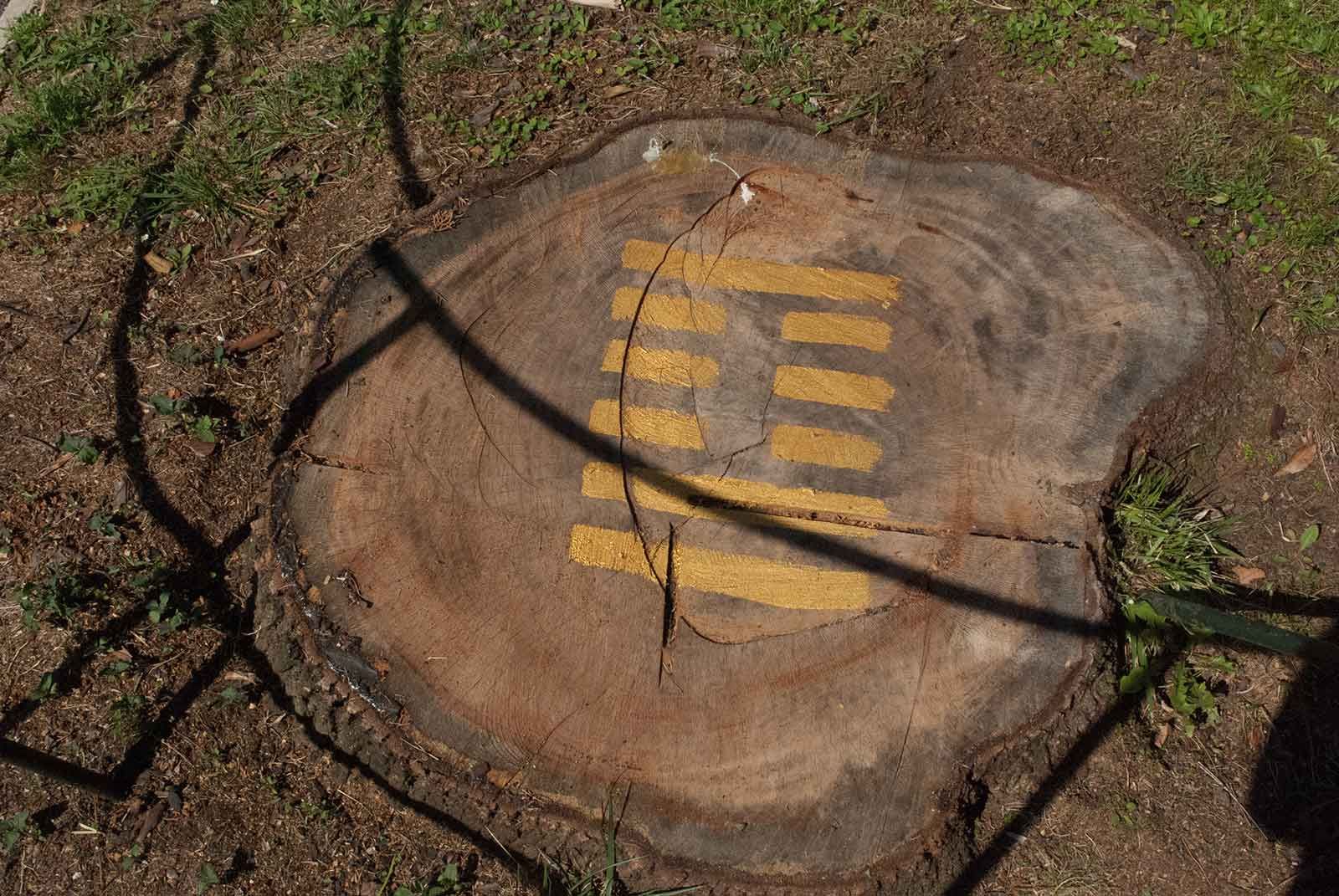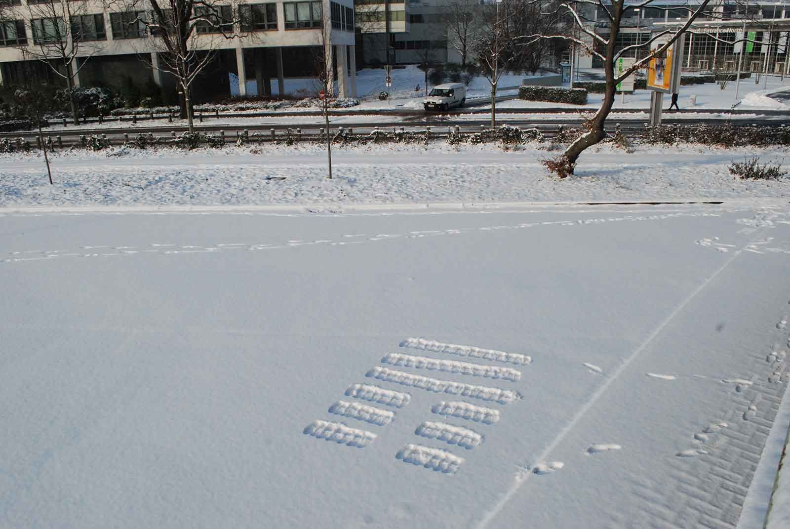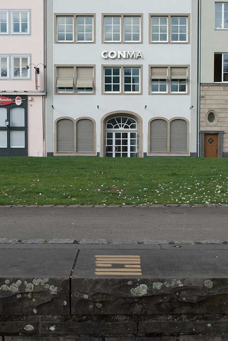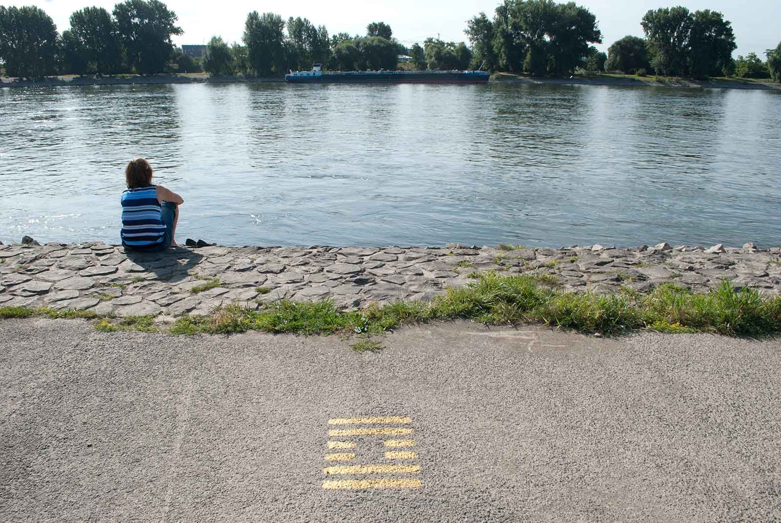 Seit längerem wildert die Kölner Künstlerin Gabriele Seifert an ausgesuchten Orten I Ging-Zeichen aus: die orakelhaften goldfarbenen Striche östlicher Herkunft geraten in die unterschiedlichsten Situationen und Zusammenhänge.