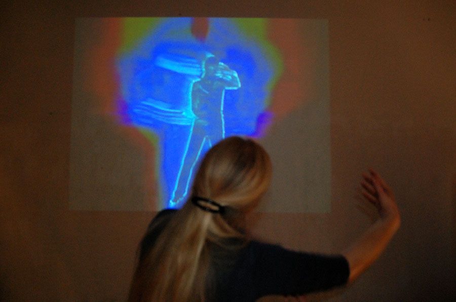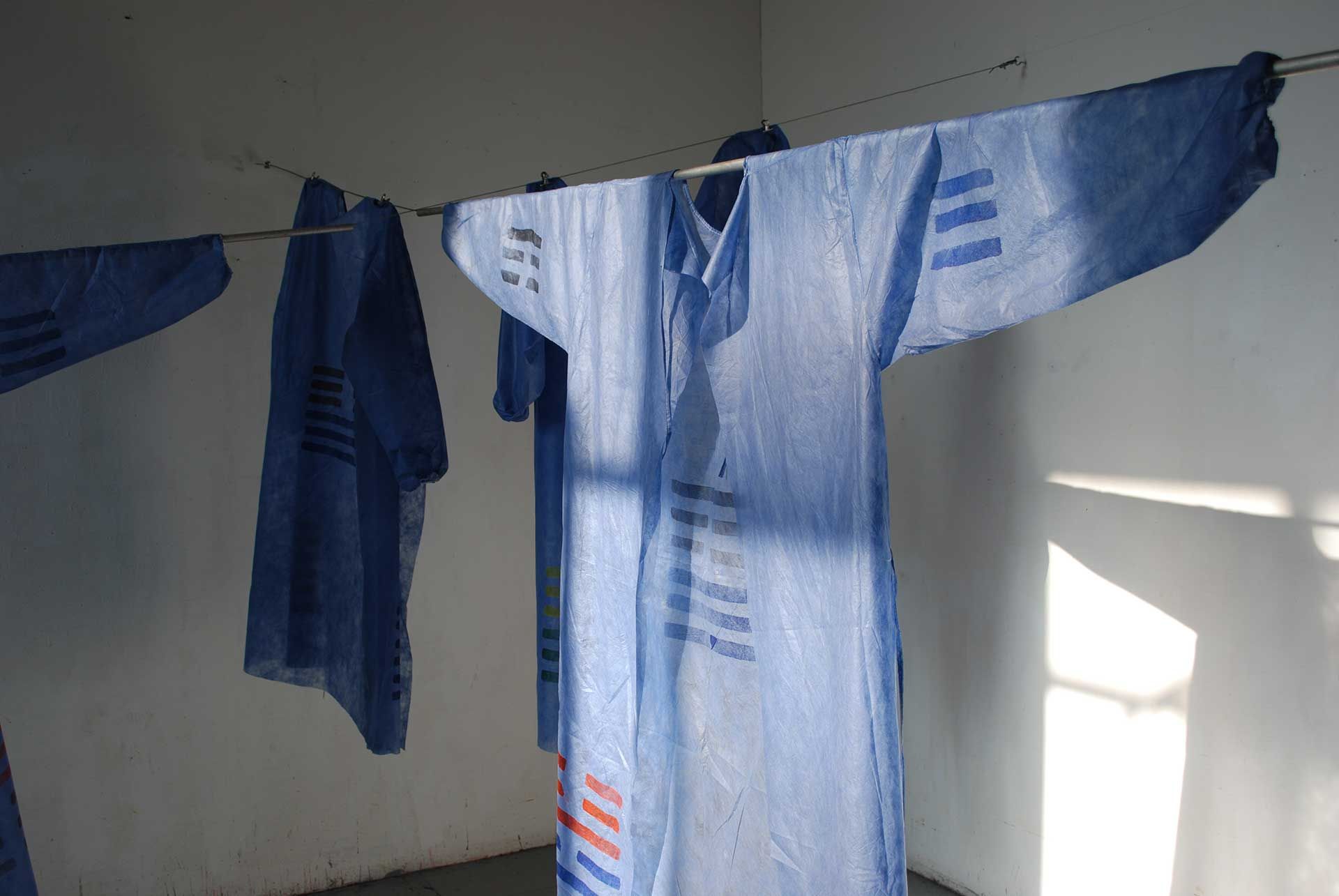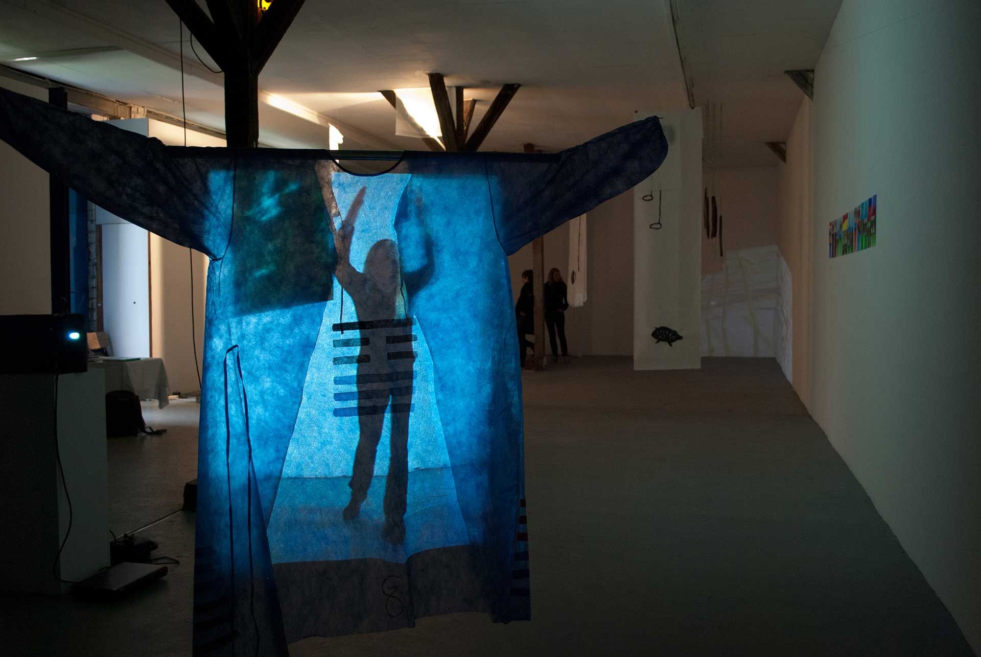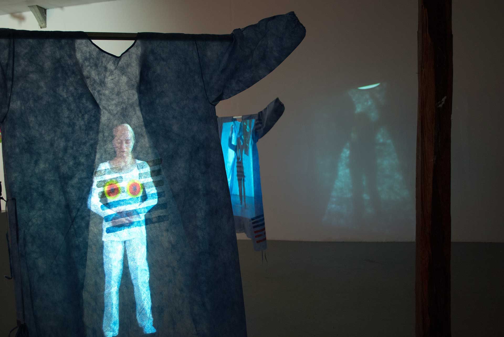 2 Videobänder, 2 Viedeoprojektoren, 2 DVD Player, 4 OP-Kittel bemalt