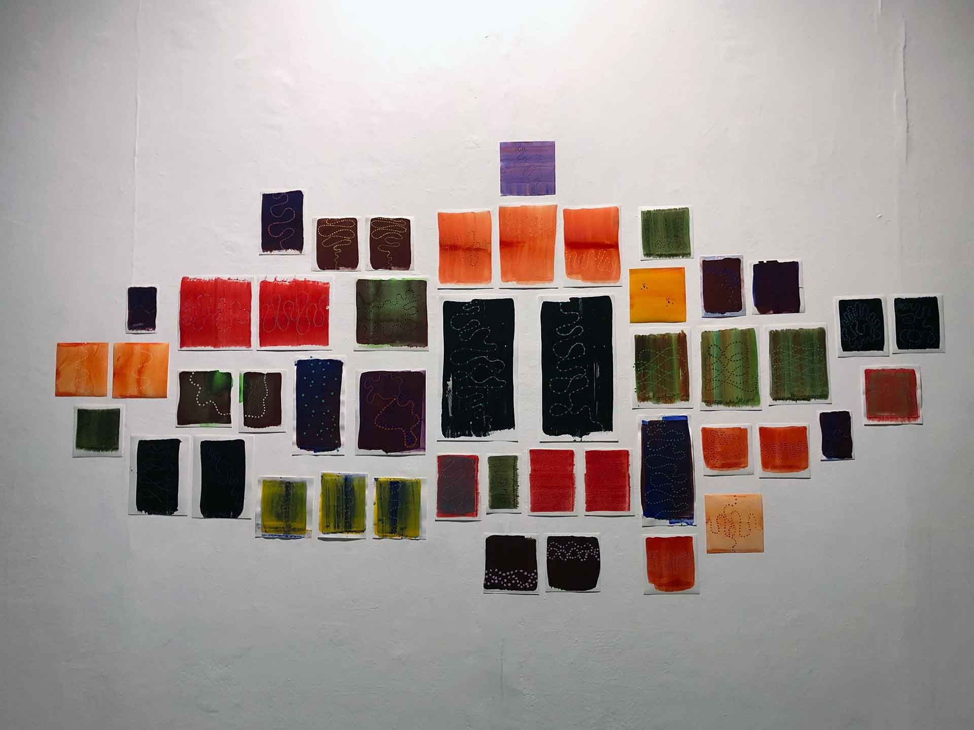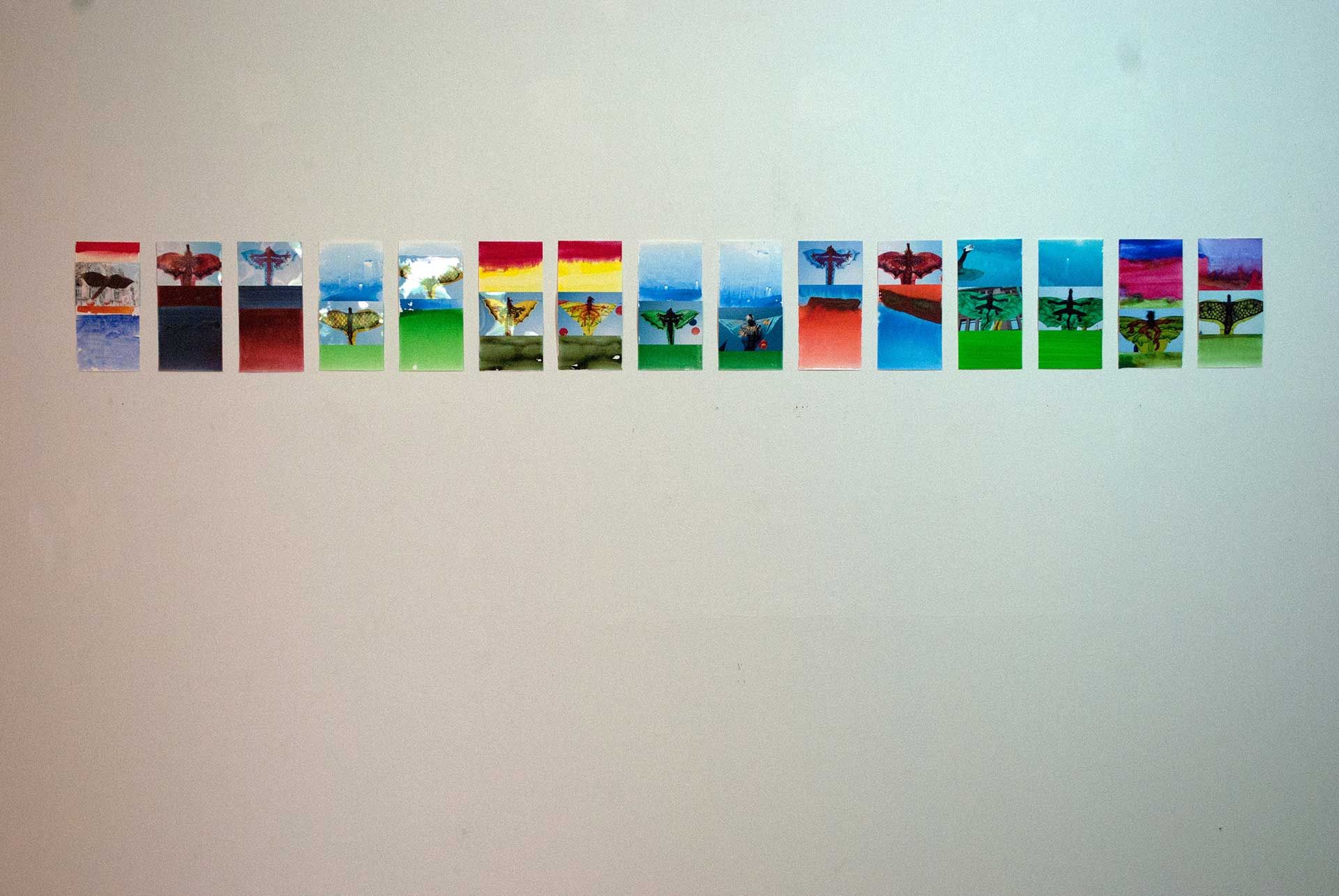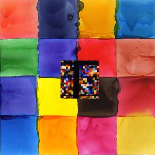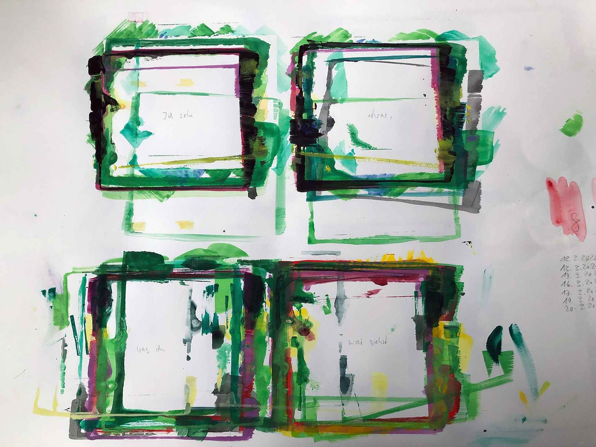 15x15 cm, Gouache, Tusche, Ölkreide, Fotografie auf Papier
